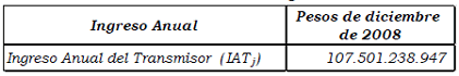Artículo 1o. Ingreso Anual. El Ingreso Anual (IATj) por los activos representados por Transelca S. A. ESP en el Sistema de Transmisión Nacional, calculado en la forma establecida en la Resolución CREG 011 de 2009, es el siguiente: