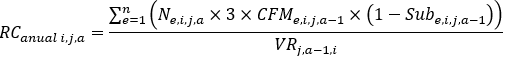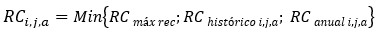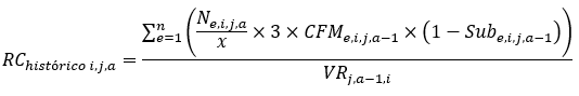 | Riesgo de cartera histórico calculado por el comercializador j aplicable al mercado relevante de comercialización i, en la fecha de cálculo del año a. Este valor se calculará conforme a la siguiente fórmula: |