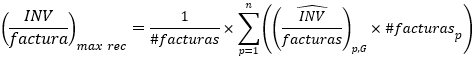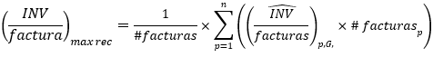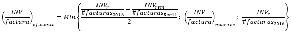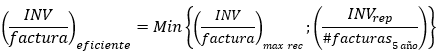 | Inversiones máximas a reconocer a reconocer por Mercado Relevante de Comercialización para el Siguiente Período Tarifario, expresado como un cociente entre inversiones y número de facturas, el cual se calcula conforme a la siguiente fórmula: |