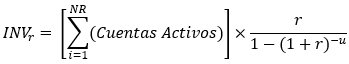 Artículo 17. RIESGO DE CARTERA A INCORPORAR EN LA REMUNERACIÓN DE LA COMERCIALIZACIÓN MINORISTA A USUARIOS REGULADOS (RC). El riesgo de cartera que se reconocerá a los Comercializadores Minoristas por atender usuarios regulados será calculado anualmente, en el mes de enero de cada año de operación, por el comercializador minorista para cada Mercado Relevante de comercialización. Este valor aplicará para los meses de enero a diciembre del año de cálculo y será determinado conforme a la siguiente expresión: