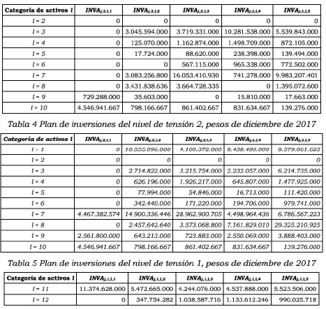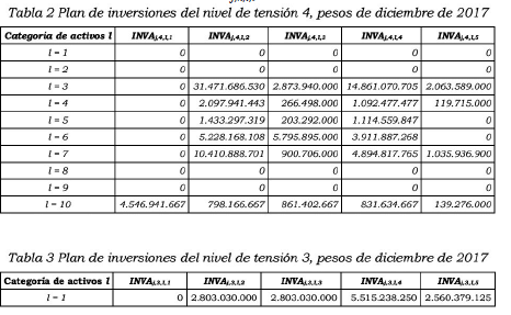Artículo 3o. Inversión aprobada en el plan de inversiones. El valor de las inversiones aprobadas en el plan de inversiones, INVAj,n,l,t, para cada nivel de tensión, es el siguiente: