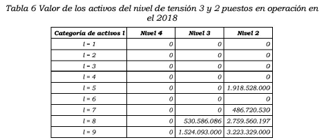 PARÁGRAFO: En aplicación de lo dispuesto en el artículo 6o de la Resolución CREG 015 de 2018 y el artículo 50 de la Resolución CREG 036 de 2019, el valor de los activos puestos en operación en el 2018, es el siguiente: