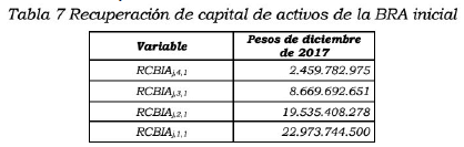 Artículo 4o. Recuperación de capital de activos de la BRA inicial. El valor de la recuperación de capital reconocida para los activos incluidos en la base regulatoria inicial de activos, RCBIAj,n,1, es el siguiente: