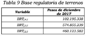 Artículo 6o. Base regulatoria de terrenos. El valor de la base regulatoria de terrenos, BRTj,n,1, del año 1, para los niveles de tensión 4, 3 y 2, es el siguiente: