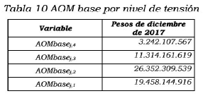Artículo 7o. AOM base por nivel de tensión. El valor del AOM base para cada nivel de tensión, AOMbasej,n, es el siguiente: