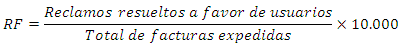 3.8. Reclamos Facturación, RF: Porcentaje de reclamos resueltos a favor del suscriptor por cada 10.000 facturas.