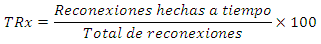 3.6. Tiempo de Reconexión, TRx: Porcentaje de reconexiones realizadas dentro del plazo máximo establecido como referencia, si la suspensión es imputable al usuario y su causa ha sido subsanada por él mismo.