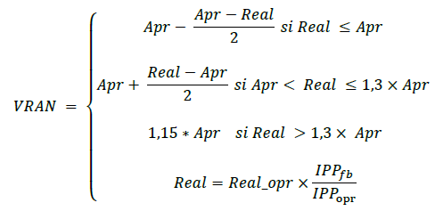 iv. Cuando el transportador remplace el 100% del activo, el valor eficiente, VRAN, se determinará siguiendo las siguientes fórmulas: