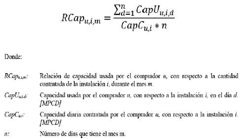 El Gestor del mercado evaluará mensualmente si en un año t, para cada comprador, el porcentaje de capacidad usada, RCapu,i, es inferior a 0,8 durante por lo menos seis meses, continuos o discontinuos. De presentarse esta situación y cuando la capacidad disponible en las instalaciones que componen la infraestructura no sea suficiente para asignar nuevos contratos con duración igual a un año, el Gestor del mercado deberá aplicar la “regla de subutilización” consistente en disminuir la capacidad del respectivo comprador y ponerla a disposición del mercado en la siguiente asignación de contratos.