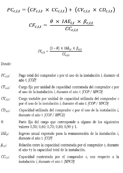 ARTÍCULO 17. CARGO POR USO A LOS COMPRADORES DE LOS SERVICIOS. Los compradores de servicios de las instalaciones de la infraestructura deberán pagar el cargo por uso que se obtiene de la aplicación de la siguiente expresión: