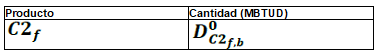 | Cantidad a asignar al comprador c, para el período de consumo p, para atender el numeral n de la Demanda Esencial, en MBTUD. | |