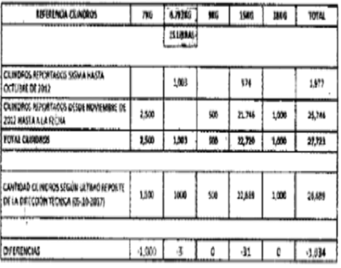 Posteriormente se revisaron las capacidades de los cilindros reportados por las empresas, encontrándose las siguientes inconsistencias