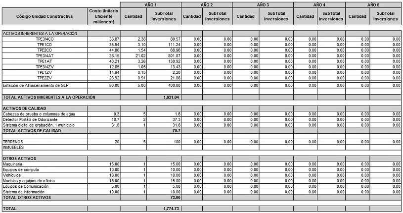 La Empresa, mediante la comunicación en cita reportó a la CREG las proyecciones de demanda, las proyecciones de gastos de AOM de distribución y el programa de nuevas inversiones, clasificadas según el listado de unidades constructivas establecido en el Anexo número 1 de la Resolución CREG 011 de 2003.