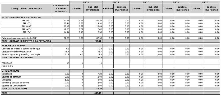 La Empresa, mediante la comunicación en cita reportó a la CREG las proyecciones de demanda, las proyecciones de gastos de AOM de distribución y el programa de nuevas inversiones, clasificadas según el listado de unidades constructivas establecido en el Anexo No. 1 de la Resolución CREG 011 de 2003.