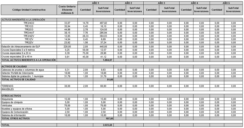 La Empresa, mediante la comunicación en cita, presentó las proyecciones de demanda, las proyecciones de gastos de AOM de distribución y el programa de nuevas inversiones, clasificadas según el listado de unidades constructivas establecido en el Anexo número 1 de la Resolución CREG 011 de 2003.