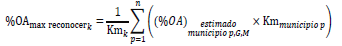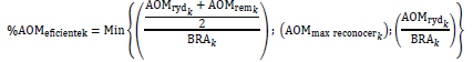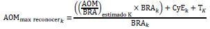Valor de gasto de AOM máximo a reconocer por mercado relevante de distribución para el siguiente periodo tarifario k, este se calcula conforme a la siguiente fórmula y se expresa en pesos de diciembre de 2014.