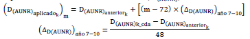 m Mes para el cual se calcula el cargo de distribución. Esta variable toma valores de 25 a 72, de acuerdo con el mes de aplicación desde el tercer y hasta el sexto año de gradualidad.