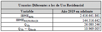 - Tanto para usuarios de uso residencial como para los usuarios diferentes a los de uso residencial, se aplicará el cargo promedio del submercado k ![]()