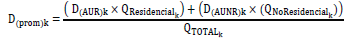 Cargo de distribución calculado para usuarios de uso residencial en el submercado de distribución k para el mes m. Expresado en pesos por metro cúbico ($/m³). Este cargo se calculará de la siguiente forma: ![]()