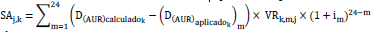 Saldo Total Acumulado del distribuidor j del submercado de distribución k, por las diferencias entre el cargo de distribución calculado y el cargo de distribución aplicado a los usuarios de uso residencial en el mes m en el submercado de distribución k. Expresado en pesos ($).