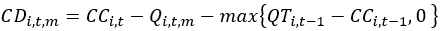 | Capacidad disponible de compra del distribuidor i, para el período de compra t, calculada para el mes m, medida en kilogramos. | |