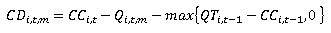| Capacidad disponible de compra del distribuidor i, para el periodo de compra t, calculada para el mes m, medida en kilogramos. | |