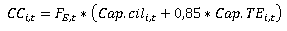 PARÁGRAFO 2. La capacidad total de envase en cilindros, de propiedad del distribuidor i, en el periodo t, se calculará de la siguiente forma.