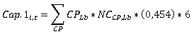 | Capacidad de envase en cilindros, de acuerdo con la información registrada al SUI desde noviembre de 2012 hasta la fecha, para cada marca de propiedad del distribuidor i en el periodo t, medida en kilogramos, definida de la siguiente forma: |