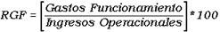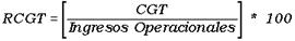 Se calcula el siguiente indicador global de gestión, que relaciona el CTG con los Ingresos Operacionales:
