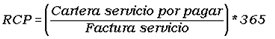Corresponde al cociente entre la cartera vencida y la facturación por servicio multiplicado por 365 días.