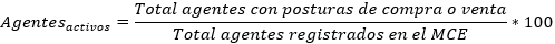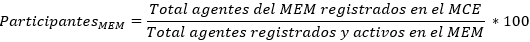 | Participación de agentes registrados | según la metodología referida en el Anexo 3. |