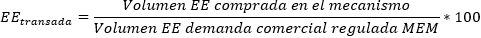 | Representatividad de la energía transada | |