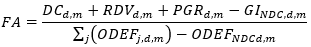 Para los casos en los cuales la demanda total doméstica más la reducción de demanda de RDV y el programa de racionamiento, sean menor que la suma de la ODEF de todas las plantas, se calculará un factor de ajuste (FA) con la siguiente expresión: