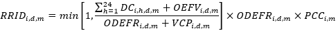 | Obligación Diaria de Energía Firme respaldada por la unidad o planta de generación i, del generador j, en el día d, del mes m, calculada según el numeral 1.2 del anexo 1 de la Resolución CREG 071 de 2006 o aquellas que la modifiquen. | |