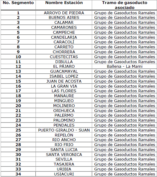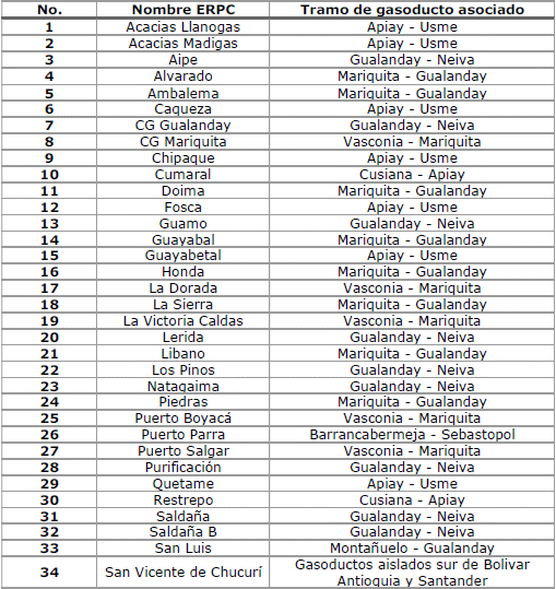 De otra parte, la empresa PROMIGAS S.A E.S.P., mediante comunicación con radicado CREG E2023003646 del 6 de marzo de 2023, informó a la Comisión que, para un total de 34 ERPC, no era posible la homologación de las ERPC que iban mantener bajo la responsabilidad de dicha empresa con las unidades constructivas definidas en la Resolución CREG 202 de 2013, de acuerdo con información consignada en la siguiente tabla: