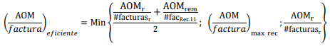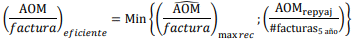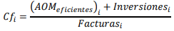 establecida para la empresa, multiplicada por el número de facturas del mercado reportado a 31 de diciembre del año anterior al año de la solicitud tarifaria, expresado en pesos de la Fecha Base. La razón eficiente