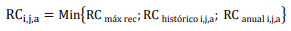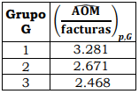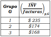 Razón (INV/facturas) asignada al municipio p según la clasificación dada al mismo municipio por grupo G de la Tabla 1 del ANEXO 2 y según la siguiente tabla: ![]() Con ese resultado, se determinará la razón INV/factura máxima a reconocer. En caso de que alguno de los municipios que conforma el Mercado Relevante de Comercialización nuevo para el Siguiente Período Tarifario no se encuentre en la Tabla 1 del ANEXO 2, la empresa deberá solicitar a la CREG que determine el grupo al que pertenece el municipio. La CREG hará esta determinación con base en la metodología de agrupación utilizada para la construcción de la Tabla 2 consignada en el ANEXO 2. | |