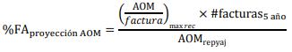 | Número total de facturas proyectadas al quinto (5°) año para el Mercado Relevante de Comercialización para el Siguiente Período Tarifario. Se calcula como el número de usuarios proyectados al quinto (5°) año para el mercado relevante de comercialización, multiplicado por doce (12). | |