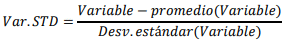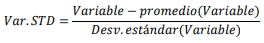 ii. Para estas variables, se determinan los promedios y las desviaciones estándar. Esas variables se transforman utilizando la siguiente ecuación: