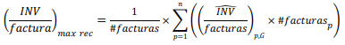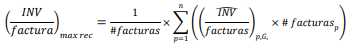 | Inversiones máximas a reconocer por Mercado Relevante de Comercialización para el Siguiente Período Tarifario, expresado como un cociente entre inversiones y número de facturas, el cual se calcula conforme a la siguiente fórmula: |