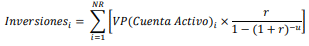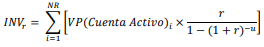 | Costo anual equivalente del valor presente de las inversiones correspondientes a la actividad de comercialización de los cinco (5) años reportados por las empresas en el horizonte de proyección. Estos valores deberán ser expresados en pesos de la Fecha Base. El costo anual equivalente se calculará conforme a la siguiente fórmula: |