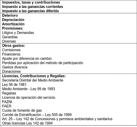 | Operativo | Gastos de distribución y/o comercialización de gas licuado de petróleo - GLP | 1.333.072.011.536 |