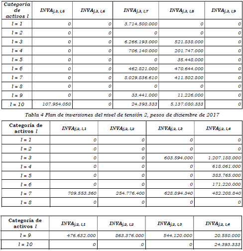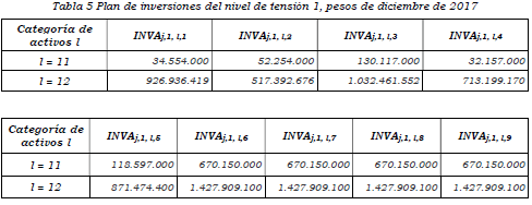 Artículo 3o. Inversión aprobada en el plan de inversiones. El valor de las inversiones aprobadas en el plan de inversiones, INVAj,n,l,t, para cada nivel de tensión, es el siguiente: