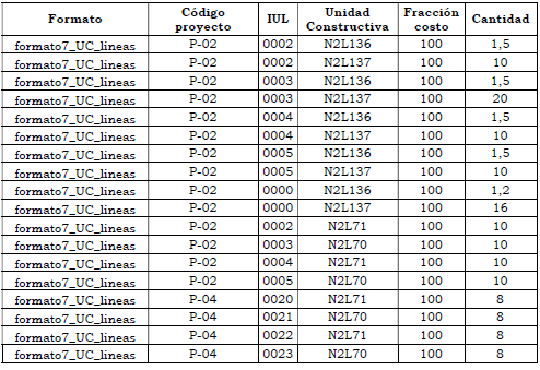 En este sentido se actualizan en los proyectos P-02 y P-04 la UC especial N2ES3 por postes tipo N2L70, N2L71 (...)"