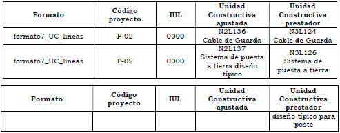 Se aclara por parte de la Comisión que las UC N3L124 (Cable de Guarda) y N3L126 (Sistema de puesta a tierra diseño típico para poste) contenidas en la tabla 6 del recurso fueron reemplazadas por las UC N3L1236 (Cable de Guarda) y N2L137 (Sistema de puesta a tierra diseño típico) respectivamente con el objeto de normalizar las UC a nivel de tensión del proyecto.