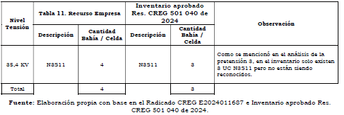 En la Tabla 15 el prestador lista el número de bahías / celdas a reconocer para la UC N0P4 (Control subestación Tipo 4 (9-12 Bahías) ($/bahía)) proponiendo un total de 10 UC de bahía / celdas reconocidas. A continuación, se muestra el análisis realizado por la Comisión donde se determina que existen 9 UC bahías / celdas en el inventario, pero que no están siendo reconocidas: