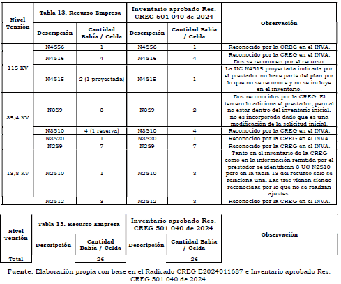 Como ya se indicó, se reconocen para remuneración 26 UC habías / celdas y una sola unidad de UC N0p5 la cual ya estaba en invetntario; sin embargo, se aclara que para el reconocimiento de las UC controles de subestaciones se debe incluir una UC por cada UC bahía / celda existente y no una sola por la totalidad de UC de control de subestaciones.