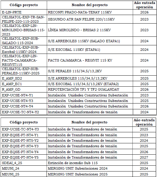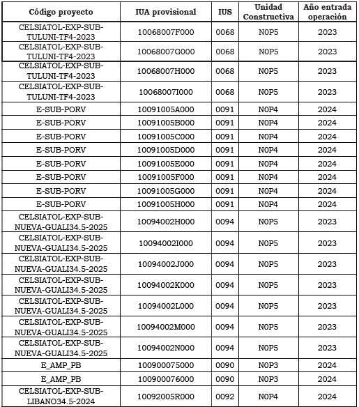 En el archivo "Inventario_INVA_OR_-TOLIMA_2023_2027" la Comisión indica que en algunas unidades constructivas "No se relaciona el código de proyecto CELSIATOLEXP-SUB-LIBANO34.5-2024 con IUL 0376 en el Formato 5,3", No se relaciona el código de proyecto CELSIATOL-EXP-SUB-NUEVA-GUALI34.5-2025 con IUL 0547 en el Formato 5,.", información que no es relevante para la evaluación de las unidades constructivas, ya que no se necesita para la evaluación pues es meramente informativa y referente a la ubicación geográfica de las subestaciones, sin injerencia en el análisis de la procedencia del reconocimiento de la remuneración.