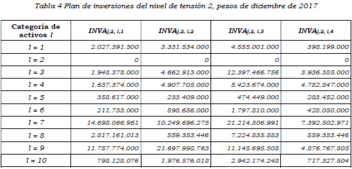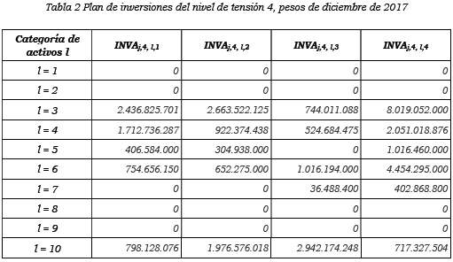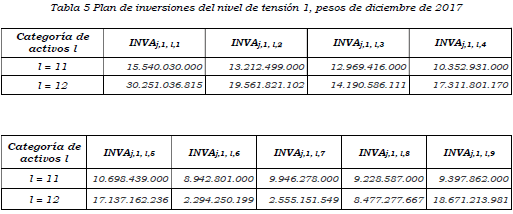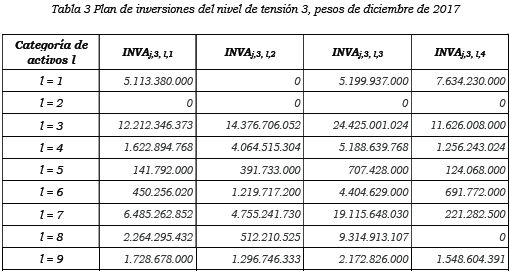 Artículo 3o. Inversión aprobada en el plan de inversiones. El valor de las inversiones aprobadas en el plan de inversiones, INVAj,n,l,t, para cada nivel de tensión, es el siguiente: