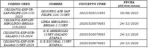 Entre estos proyectos se destacan los siguientes, frente a los cuales CELSIA COLOMBIA S.A. E.S.P. suministra el concepto entregado por la UPME: